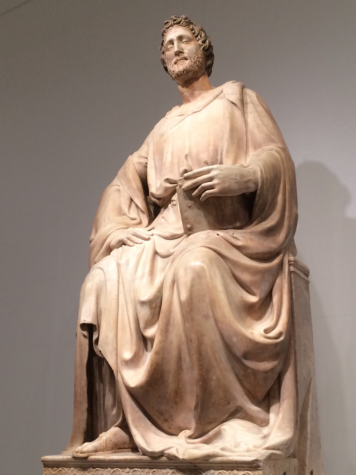 Donatello's first monumental work, this seated figure of St. John the Evangelist occupied a position of great visibility at the cathedral, the niche directly to the right the main portal.